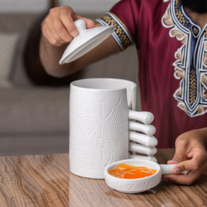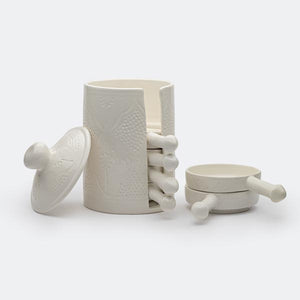 L'Alburj Miraj blanc, signifiant 'tour' en arabe, est un ensemble de six coupelles élégantes. Elles se rangent facilement dans leur Alburj après usage. Avec ses rainures délicates, cet ensemble allie esthétique et fonctionnalité pour sublimer votre table.