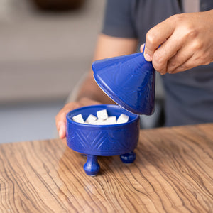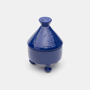Ce mini tajine sur pied, disponible en bleu ou blanc, est parfait pour sublimer votre table avec de jolis apéritifs. Travaillé avec une technique spéciale pour creuser l'argile, il ajoute une touche de sophistication, transformant votre table en un festin visuel.